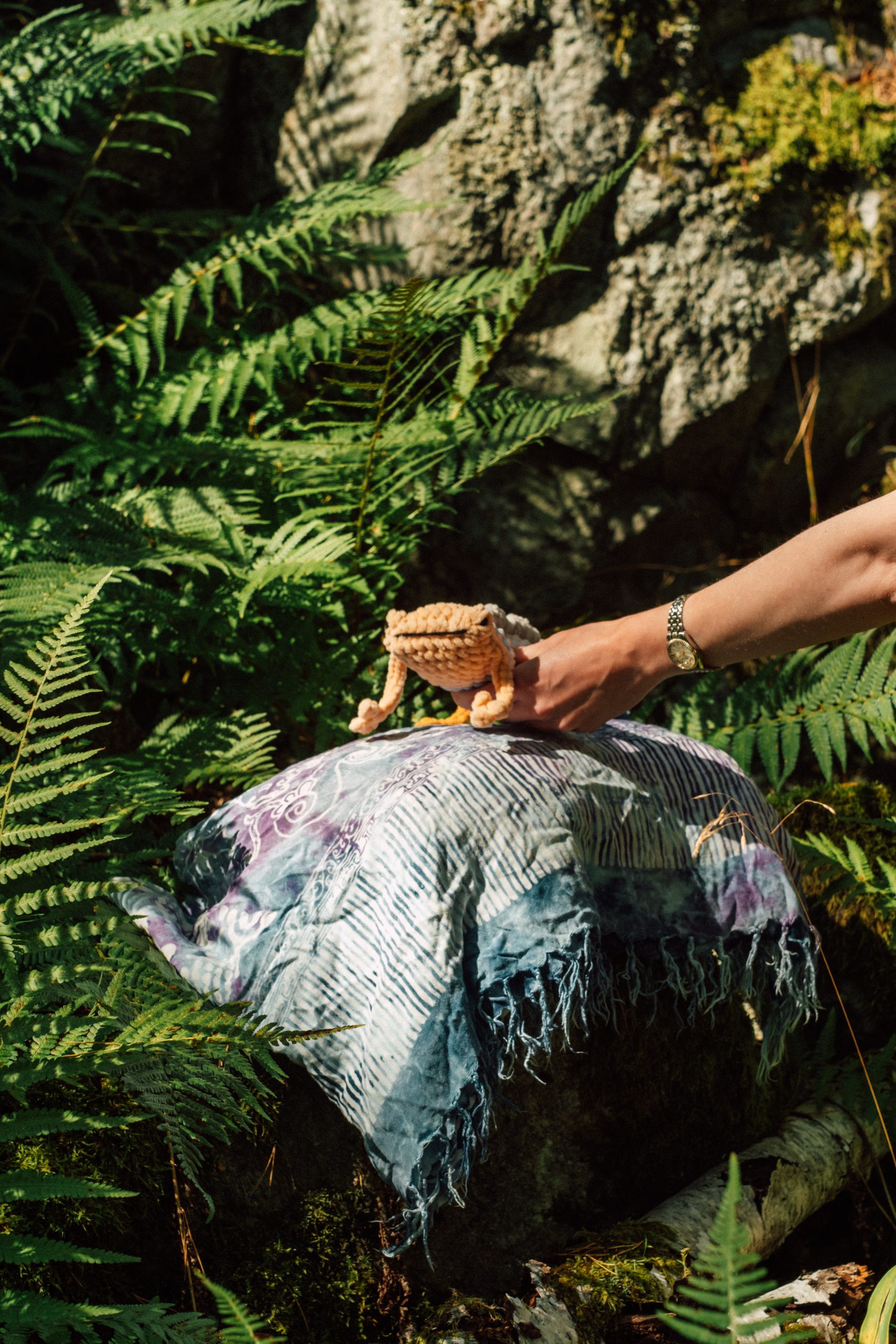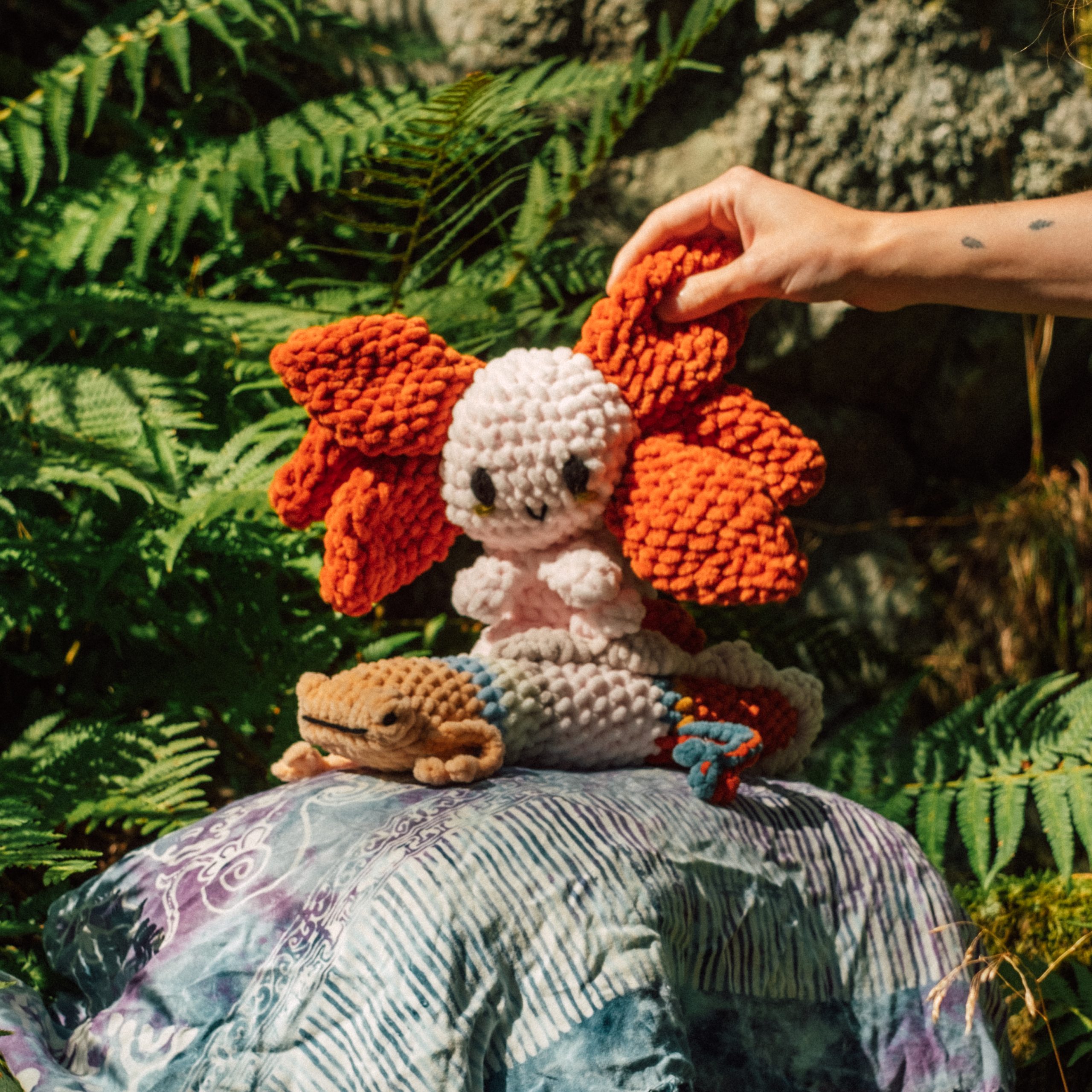 Lazy and sweet, Frank is a crocheted axolotl made with