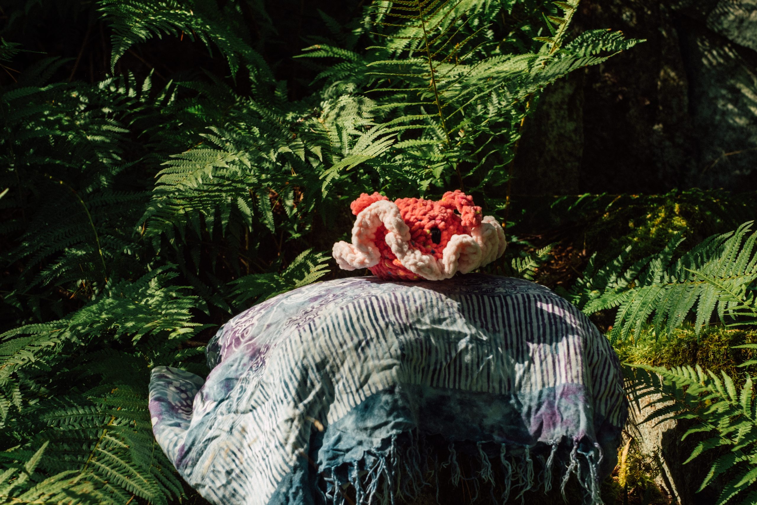 Crocheted in a soft and multi-coloured delicious pink chenille yarn.